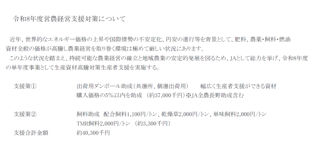 【令和8年度営農経営支援対策について】