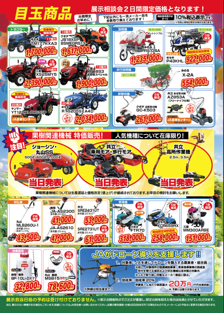 【春の農業機械展示相談会】開催のお知らせ