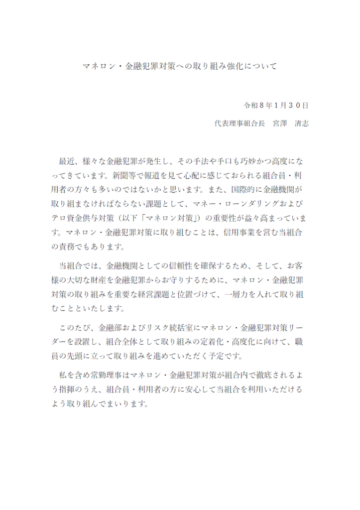 マネロン・金融犯罪対策への取り組み強化について