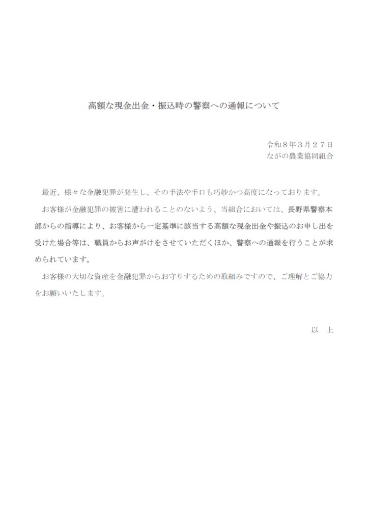JAながのからのお知らせ