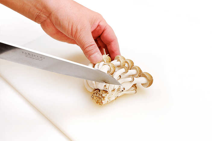 • ぶなしめじは石づきを切り落とし、長いものは半分に切る。