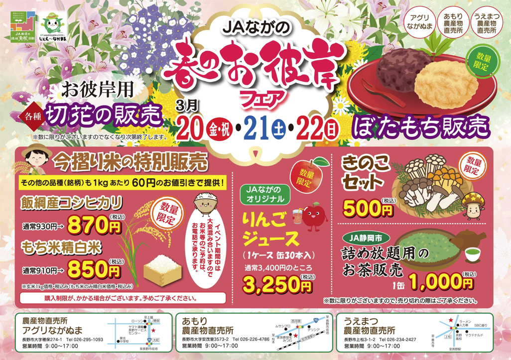 農産物直売所「春のお彼岸フェア」開催のお知らせ